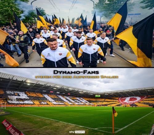 德累斯顿已经提前升级德乙,在最后一轮比赛之前,球迷们为球队举行了盛大的庆祝仪式,欢迎球员们来到球场,并在看台上拼出了“德乙联赛”字样。
