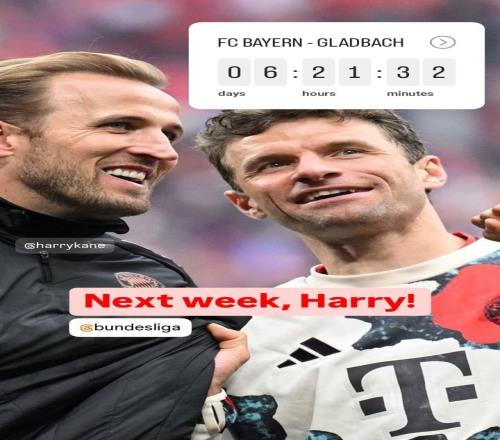 赛后,托马斯-穆勒在社交媒体上调侃凯恩,他晒出与凯恩的合影,并配文写道:“下周,哈里!”另外还配上了下轮德甲拜仁对阵门兴的倒计时。