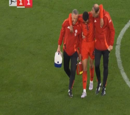 德甲第28轮,拜仁3-1击败奥格斯堡比赛第52分钟,穆西亚拉拼抢时拉伤,在队医搀扶下离场。