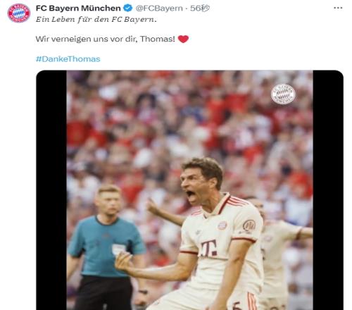 经拜仁慕尼黑与托马斯-穆勒共同决定:效力于俱乐部25年、与球队共同奋战赢得33座奖杯的拜仁传奇——穆勒将迎来拜仁生涯终章。