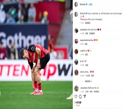 勒沃库森官方已经宣布维尔茨缺席主场迎战拜仁的欧冠次回合,并且将缺阵数周。他本人也通过社媒晒出自己的比赛照,并表示:“只是一次小考验