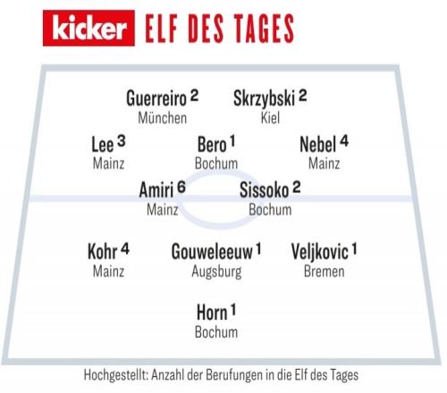 中场:李在城(美因茨)、阿米里(美因茨)、马图斯-贝罗(波鸿)、易卜拉希马-西索科(波鸿)、内布尔(美因茨)