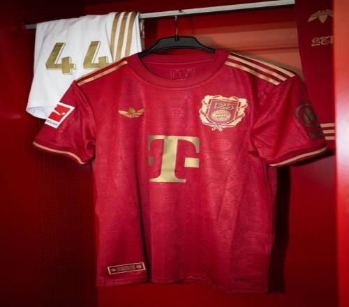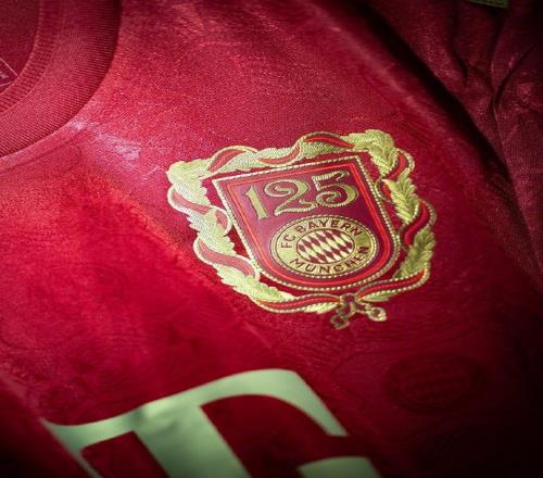 这款独特的特别版球衣延续了传统的红色,并配以金色的品牌标志。此外所设计的纪念徽章则融入了成立文件中的元素、盾形纹章以及巴伐利亚的月桂花环元素,金色的细节则为设计增添了现代感。