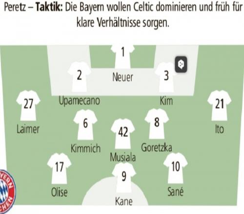 体育资讯2月18日报道宣称 北京时间周三凌晨的欧冠淘汰赛附加赛次回合,拜仁将在主场迎战凯尔特人,《慕尼黑日报》对主队的首发阵容进行了预测,凯恩、萨内、奥利塞组成进攻三叉戟。