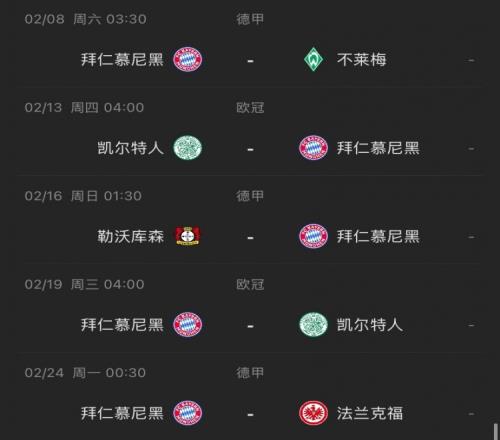 凯恩说道:“(在2月)我们有很多艰难的比赛,包括凯尔特人、勒沃库森、斯图加特和法兰克福。我们必须做好准备,而且需要全队齐心协力。我们还有很多比赛要踢。”