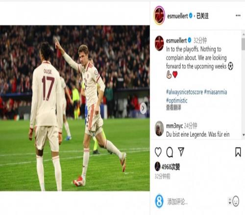 将踢附加赛穆勒社媒:没什么好抱怨的,期待未来几周的比赛