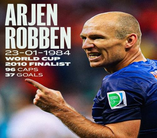 荷兰队祝罗本41岁生日快乐,球员时代为国家队出战96场37球34助