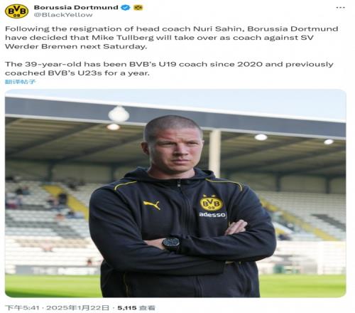 体育资讯1月22日报道宣称 多特官方发布公告,宣布图尔伯格担任临时主帅。