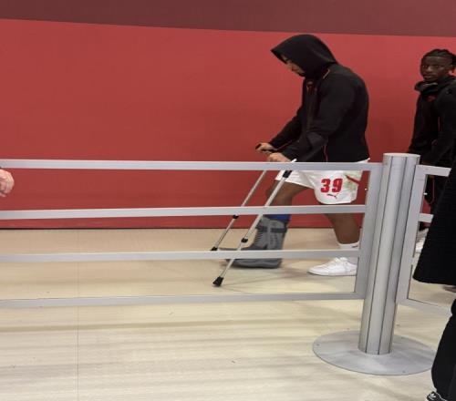 媒体拍摄到,比赛之后亨里希斯拄拐离开安联球场。
