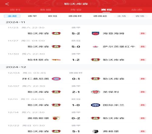 仅差拜仁4分!勒沃库森三线8连胜轰23球丢5球,连克拜仁国米