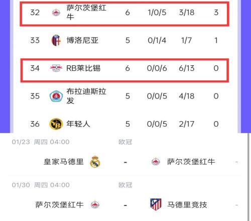 体育资讯12月11日报道宣称 新赛制欧冠进行到联赛阶段第6轮,RB莱比锡2-3不敌维拉,6连败率先出局,萨尔茨堡红牛0-3不敌巴黎,6轮仅3分濒临出局,最后2轮的对手是皇马和马竞。