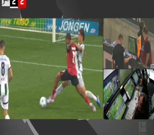 赛后裁判施洛德作出回应:“在球场时我印象是门兴球员(板仓晃)先碰到皮球,这也是我为何让比赛继续进行的原因。在VAR检查过后发现,画面显示阿德利先触球,建议我到场边检查。”