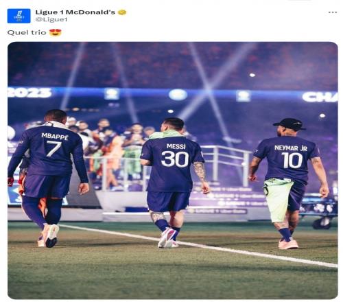 体育资讯6月24日报道宣称 法甲官方更新社媒动态,晒出昔日的巴黎锋线三叉戟。