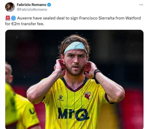 罗马诺:欧塞尔已敲定从沃特福德签下塞拉尔塔,转会费200万欧元