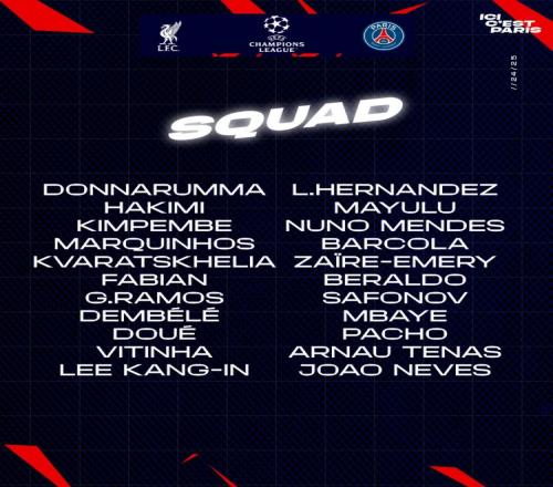 体育资讯3月10日报道宣称 北京时间3月12日凌晨4时,欧冠1/8决赛次回合利物浦主场对阵巴黎,双方首回合利物浦1-0客场获胜,巴黎今日公布此役大名单。
