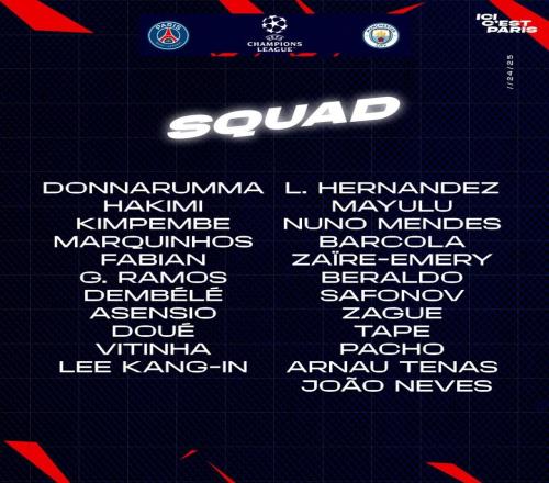 体育资讯1月22日报道宣称 北京时间1月23日周四凌晨4点,巴黎圣日耳曼将在欧冠联赛阶段第7轮主场迎战曼城,今天巴黎公布了大名单。