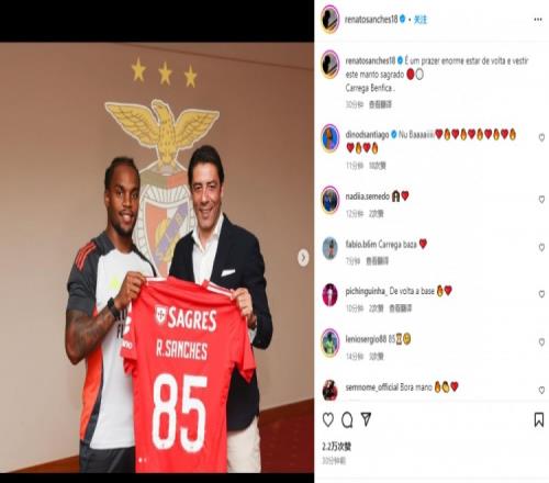桑谢斯晒出自己手持本菲卡85号球衣的照片,并配文:“很高兴能够回归重新披上这件神圣的战袍。本菲卡加油!”
