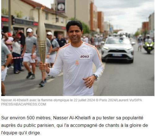 参与奥运圣火传递!巴黎主席纳赛尔:没想到我这么受欢迎