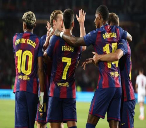 巴萨首发:25-什琴斯尼、5-库巴西、18-赫拉德·马丁、23-孔德、24-埃里克·加西亚、8-佩德里、20-奥尔莫、21-德容、14-拉什福德、10-亚马尔、7-费