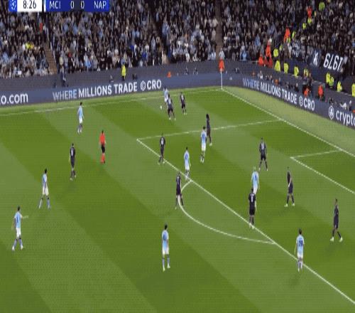 半场结束,两队互交白卷,两队的射门次数为16-1,米林科维奇完成了5次关键扑救。下半场开始后,曼城继续加强攻势,那不勒斯球员的体能开始下降。