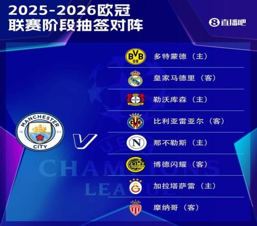 直播吧08月30日报道宣称 欧足联官方公布欧冠联赛阶段赛程,曼城赛程如下。