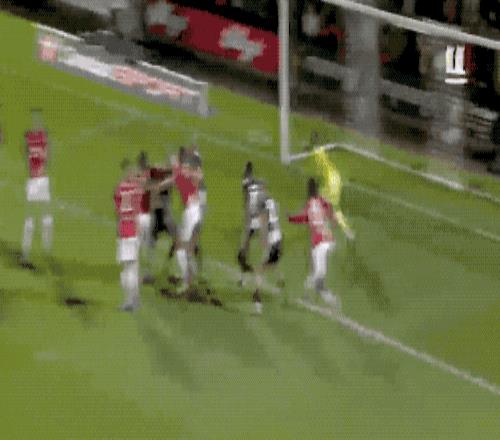 第22分钟,场上终于有进球产生,乌加特和迪亚洛撞在一起,大水冲了龙王庙,球权交给格林斯比。