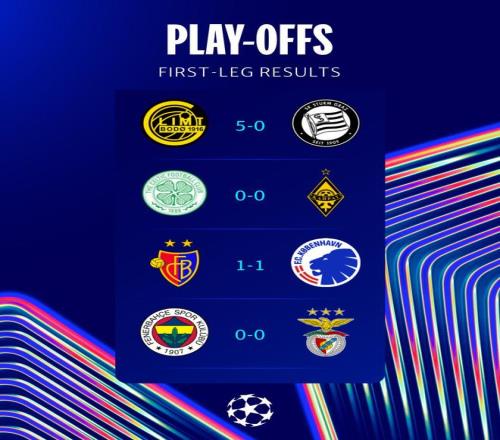 主场还是太权威!昨夜四场欧冠附加赛,仅博德闪耀取胜