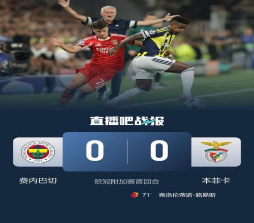 直播吧8月21日报道宣称 欧冠附加赛首回合,费内巴切坐镇主场萨拉克格鲁球场迎战本菲卡。上半场,阿克图尔科格鲁任意球被扑。易边再战,弗洛伦蒂诺-路易斯两黄被罚下,恩内斯里补射被吹。最终费内巴切0-0本菲卡。双方次回合将在28日凌晨移师本菲卡主场。