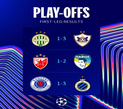 雷速体育8月20日报道宣称 在今日凌晨结束的欧冠附加赛首回合前三场比赛中,流浪者1-3不敌布鲁日,贝尔格莱德红星1-2帕福斯FC,费伦茨瓦罗斯1-3卡拉巴克。