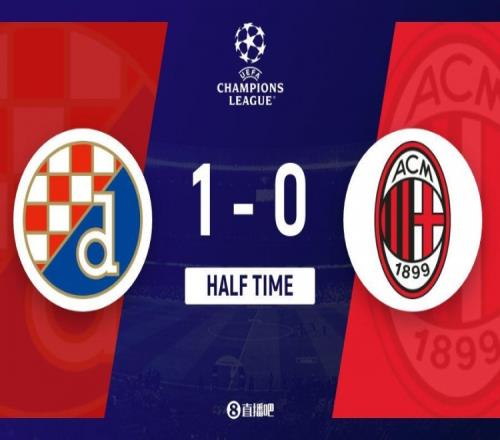 体育资讯1月30日报道宣称 北京时间1月30日4:00,欧冠联赛阶段第8轮,AC米兰做客萨格勒布大球场挑战萨格勒布迪纳摩。上半场,加比亚后场失误送礼,巴图里纳单刀破门,穆萨两黄变一红被罚下。上半场比赛结束,米兰暂时0-1落后萨格勒布迪纳摩。