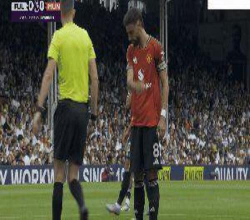 英超第2轮,曼联客场1比1战平富勒姆。上半场芒特造点,B费将点球打飞。B费主罚点球前,有一个小插曲:主裁从B费身边经过,又走到身后,碰到了正在后退的B费。对于主裁的这一举动,B费十分不悦,向主裁表达了不满。