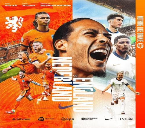 荷兰队官方社媒发布了为此役制作的海报,范迪克占据C位,阿克、哈维-西蒙斯、韦霍斯特、斯通斯、贝林厄姆、凯恩等球员出镜。