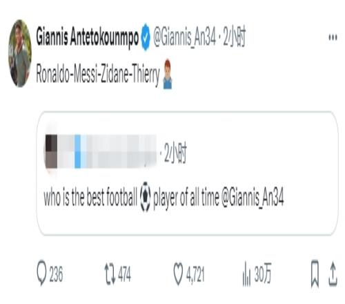 字母哥回答:罗纳尔多、梅西、齐达内、亨利
