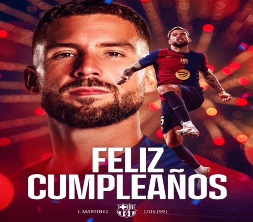 体育资讯5月17日报道宣称 巴萨官方晒图,祝贺了伊尼戈-马丁内斯34岁生日快乐。