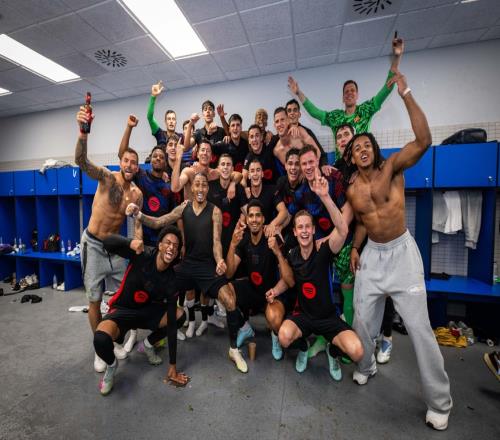 赛后,巴萨官方晒出了全队更衣室大合照,什琴斯尼手中拿烟&伊尼戈-马丁内斯拿着酒。