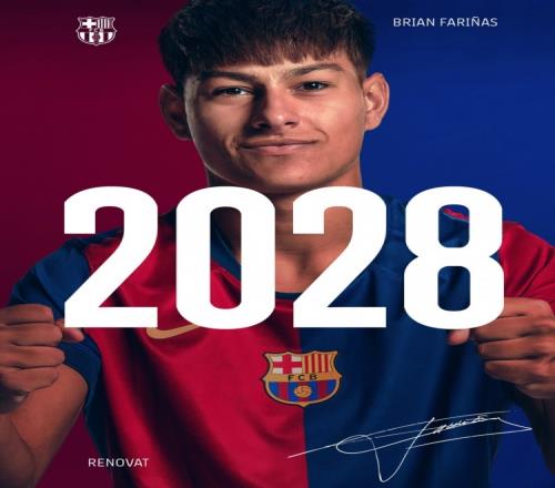 巴萨官方:俱乐部与19岁西班牙中场布莱恩法里纳斯续约至2028年