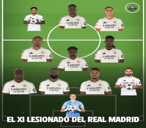 而在维尼修斯、罗德里戈和卢宁伤停后,皇马本轮缺阵的一线队球员已经多达11人,正好可以组成一套首发。