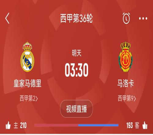 体育资讯05月14日报道宣称 明天凌晨3点30分,皇马主场迎战马洛卡,本场比赛皇马不胜即送巴萨提前3轮夺冠。