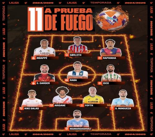 西甲第35轮官方最佳阵:姆巴佩、拉菲尼亚、索尔洛特在列