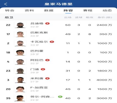 体育资讯05月13日报道宣称 罗马诺消息,33岁的巴斯克斯预计今夏离开皇马,目前皇马一线队后防线上“非伤即离”。