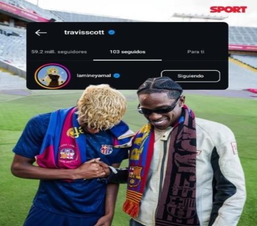 体育资讯5月13日报道宣称 巴萨小将亚马尔如今已经成为全球公认的球星之一,他吸引了不少的拥趸,说唱歌手特拉维斯-斯科特就是其中之一。