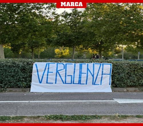 不满!球迷在皇马基地外面挂上“耻辱”横幅,但被安保人员撤下