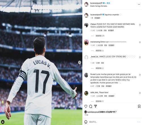 “卢卡斯,如果你真的热爱这支球队,如果你真的喜欢这件球衣和这支球队的徽章,请离开。无论他们是否试图与你续签合同(我认为他们不会),离开球队。我感谢你为皇马所做的一切,但现在是时候让一个能够踢满90分钟的球员来做这项工作了。感谢你们所做的一切,我向上帝祈祷,希望下个赛季不要再见到你们。祝你一切顺利。”