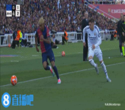 第30分钟,巴尔韦德飞铲亚马尔脚踝染黄。↓