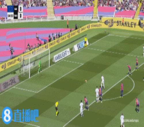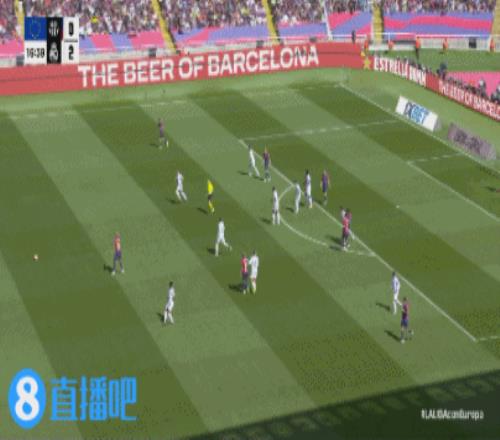 第42分钟,亚马尔外脚背传中,拉菲尼亚头球冲顶高出横梁。↓