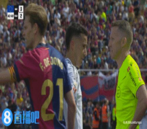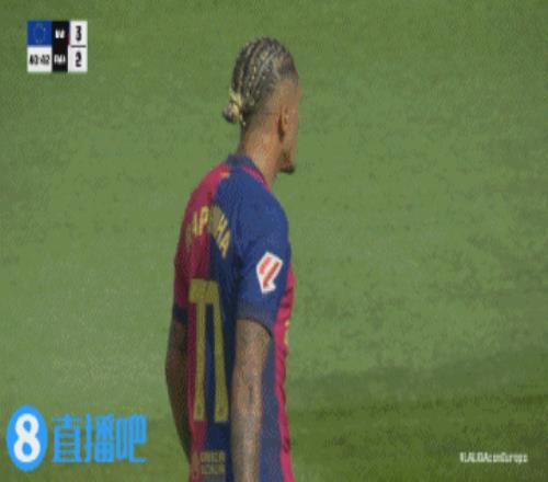 巴萨让二追三反超+1分钟2球!拉菲尼亚破门!第34分钟,姆巴佩和塞巴略斯中场配合失误,佩德里断球后直塞,拉菲尼亚贴地斩破门,巴萨3-2皇马!↓