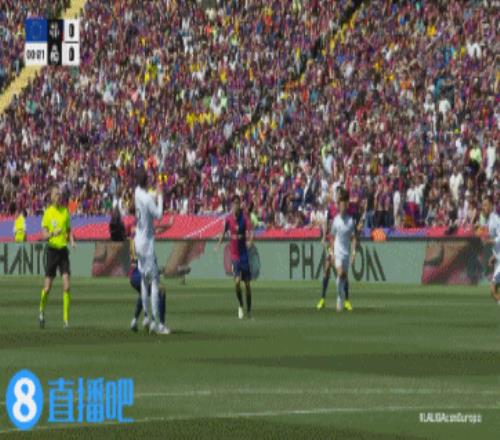 第1分钟,巴尔韦德开场放倒奥尔莫。↓