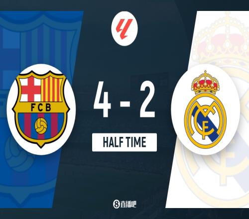 上半场比赛结束,巴塞罗那主场暂时4-2领先皇家马德里。