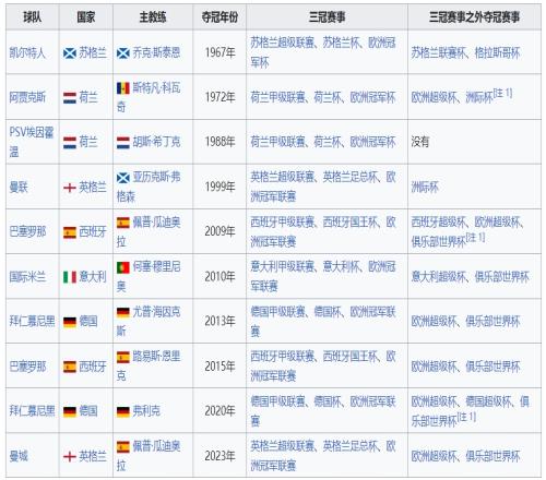 凯尔特人、阿贾克斯、埃因霍温、曼联、巴萨x2、国米、拜仁x2、曼城