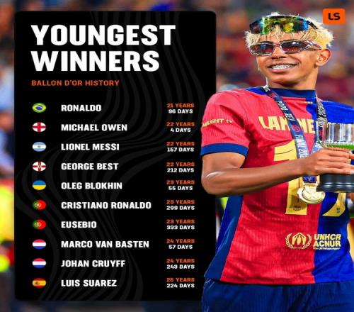 体育资讯5月6日报道宣称 亚马尔是目前金球奖的热门人选,他在金球奖的赔率力压拉菲尼亚和登贝莱排名第一。亚马尔有望成为金球奖历史最年轻的获得者。